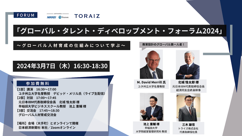 2024年3月7日に開催された、トライズ株式会社様、日本経済新聞社教育事業ユニットの共催によるフォーラム「グローバル・タレント・ディベロップメント・フォーラム2024」の、ライブZOOM配信のオペレーションを担当いたしました。
