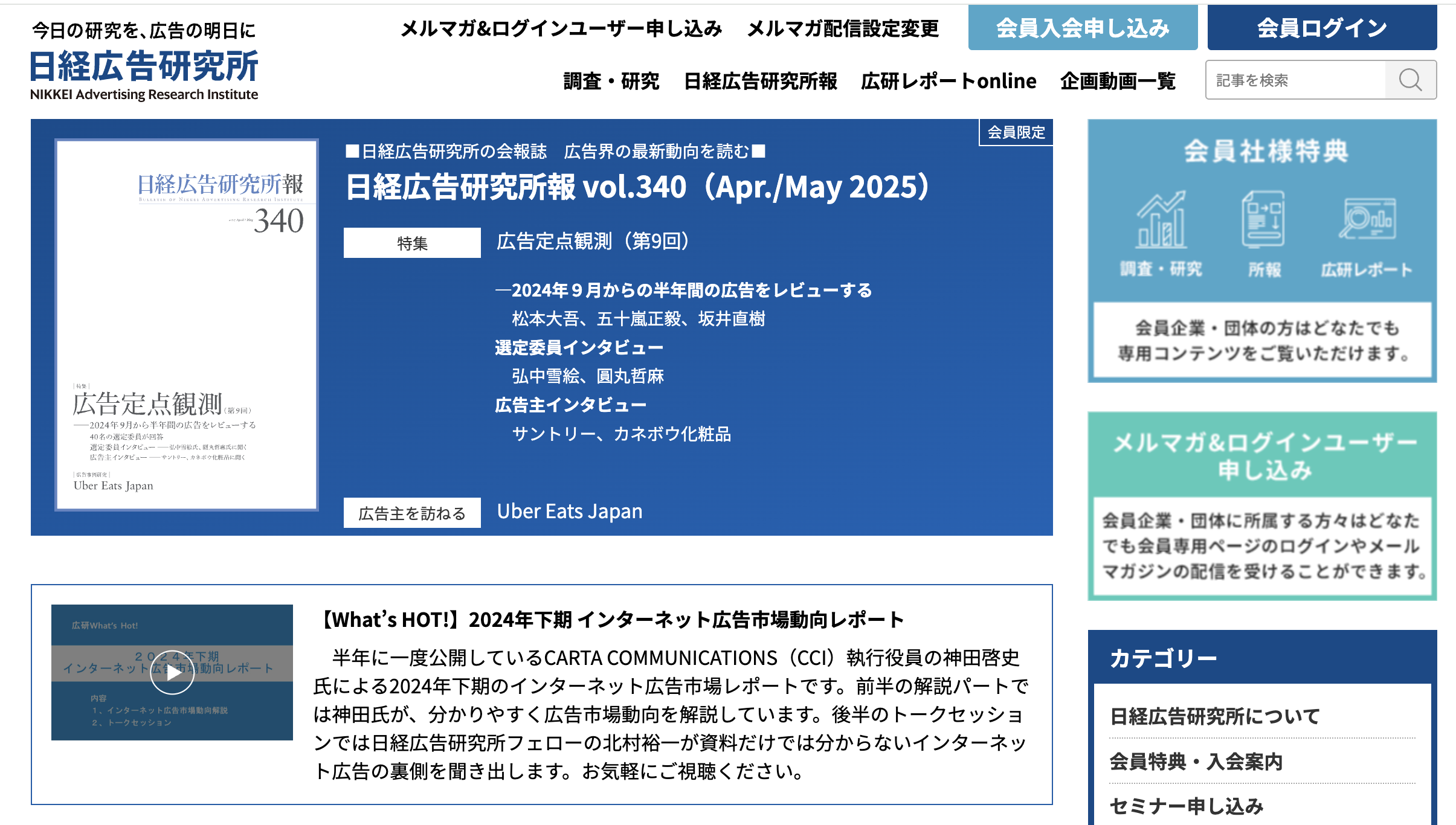 様々なテーマの講座を通して受講いただくことで、最新の広告事情全般を理解することが出来る、日経広告研究所、会員限定の配信です。