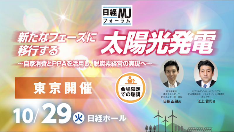 本フォーラムではこうした状況を踏まえ、企業が脱炭素経営を実現する最適解としての太陽光発電の展望などをそれぞれの見地から検証いたします。